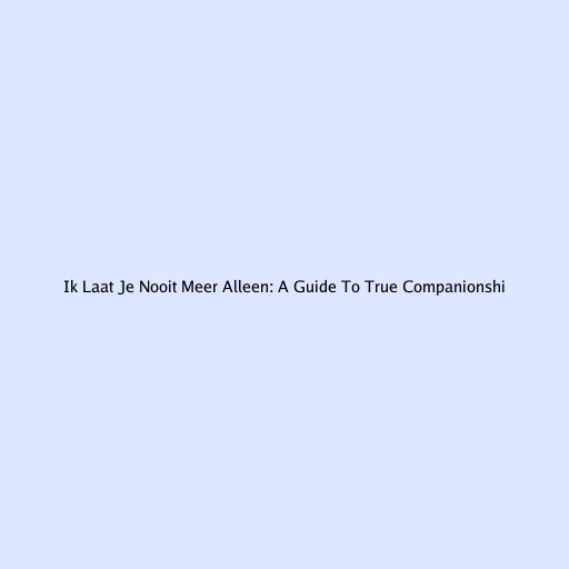 Ik Laat Je Nooit Meer Alleen: A Guide to True Companionship
