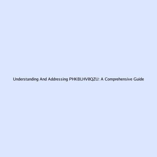 Understanding and Addressing PHKBLHV0QZU: A Comprehensive Guide